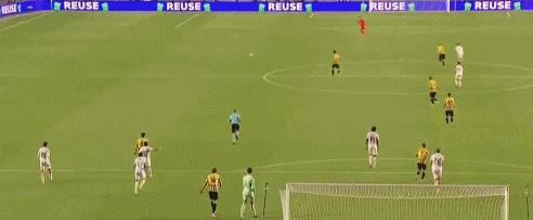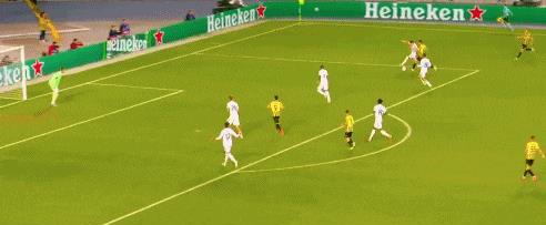 这原本是阿拉木图凯拉特的进攻,皇马后场连续解围。弗兰-加西亚将球回传给门将库尔图瓦——这并不是最佳选择,看看塞巴略斯的手势,他要求弗兰-加西亚往前开大脚。